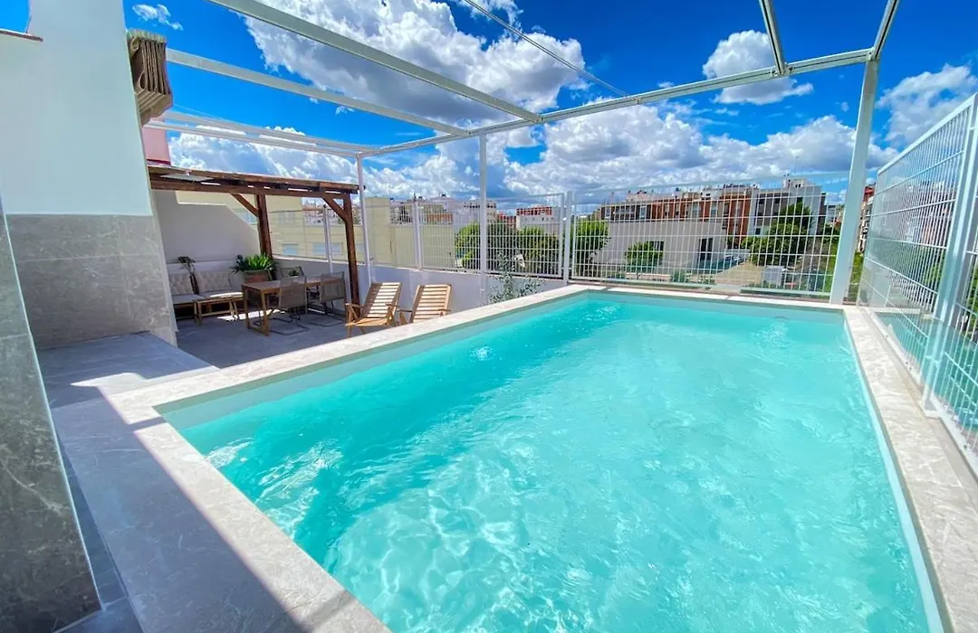 Villa With Private Swimming Pool In Sevilla has an equipped kitchen which includes a fridge, an oven, and glassware. Guests can dine at KFC Los Arcos, located 450 metres away. Seville airport is 5 km away, while Seville-Santa Justa train stop is 25 minutes on foot from this property.